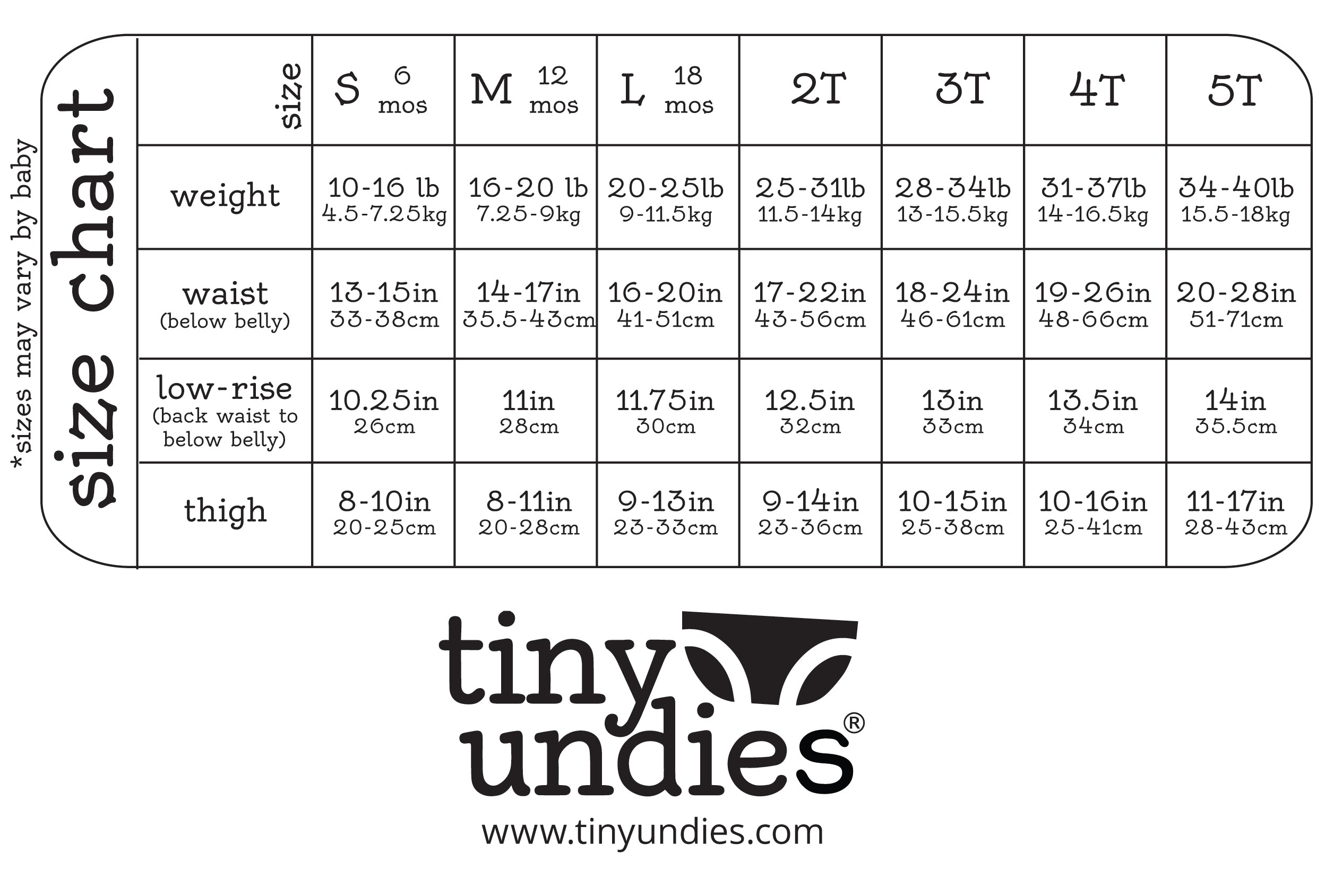 These Undies are the smaller sizing we carried in 2024 and before. If you have a smaller baby than the ânormâ these should be perfectâŚnote that they are a full size smaller than our updated, roomier line + a full size smaller than mainstream baby clothing.